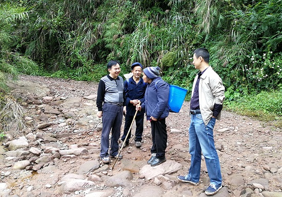 戴显林同志一行徒步踏勘前往龙池村的沿山道路情况,并在龙池村委会会议室召开座谈会,在开展政策宣传解释的同时,与龙池村村民就道路、饮用水、通信等基础设施建设和产业发展方面的问题进行商议讨论,提出指导性意见建议。同时,戴显林同志一行还深入部分建档立卡贫困户家中,通过实地查看和面对面交心谈心,动态了解掌握当前的生产生活情况以及存在的困难和问题。