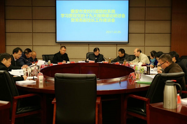 12月25日上午,全市党校行政学院系统学习贯彻党的十九大精神理论研讨会在市委党校召开。市委党校常务副校长戴显林、副校长杨国先、副校长倪子尧、机关党委书记李宇武出席会议,各县(区)委党校常务副校长及科研代表、市委党校全体教职工参加会议,会议由市委党校副校长杨国先主持。